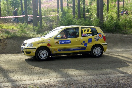 One of the surprises of the event was the rough nature of some of the link roads between the well know "flat out" sections you see on TV. Here we are heading for the big rock that caused major under body damage and ending our rally.